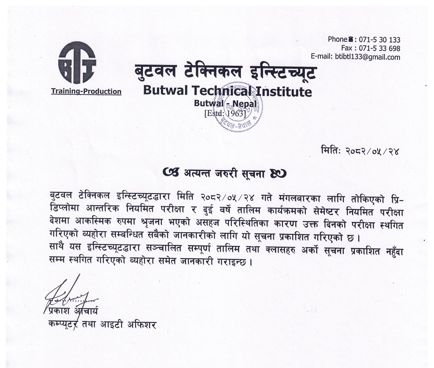 Butwal Technical Institute Staff in Dress
