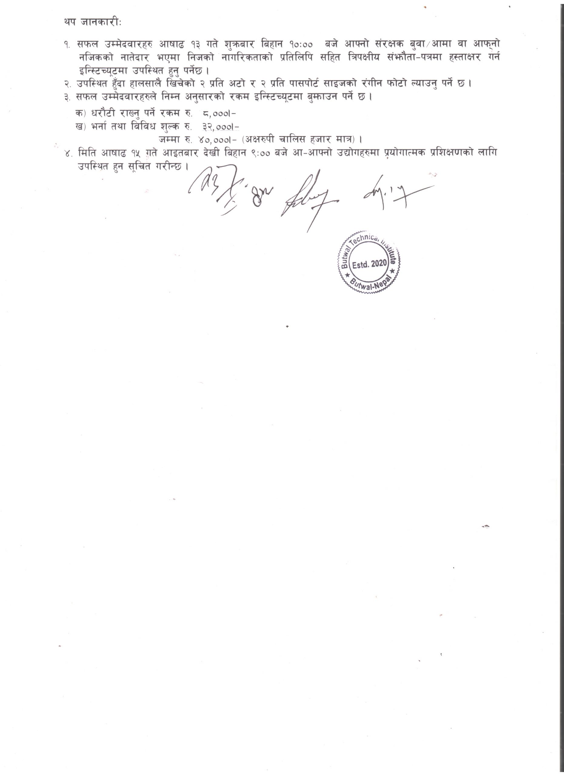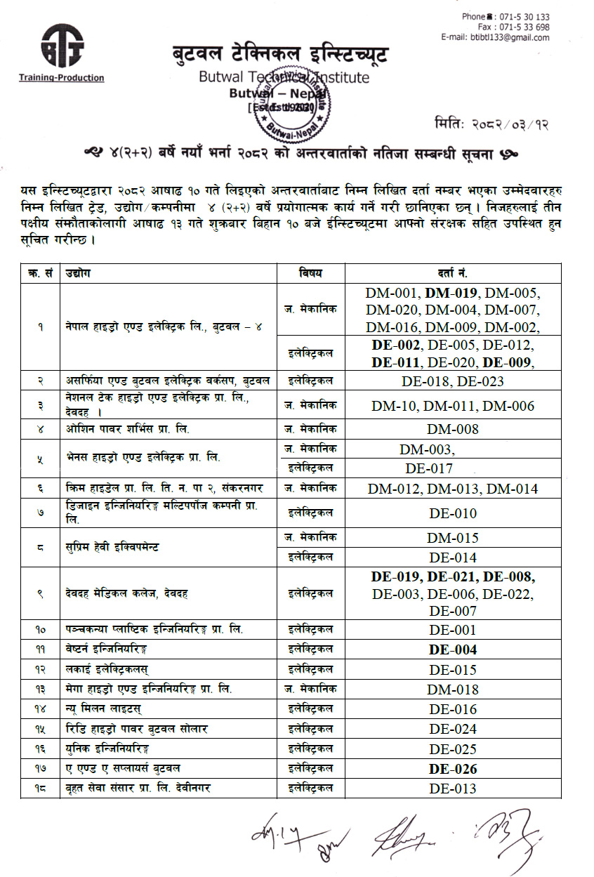४ (२+२) बर्षे नयाँ भर्ना २०८२ को अन्तर्वार्ताको नतिजा सम्बन्धी सूचना ।